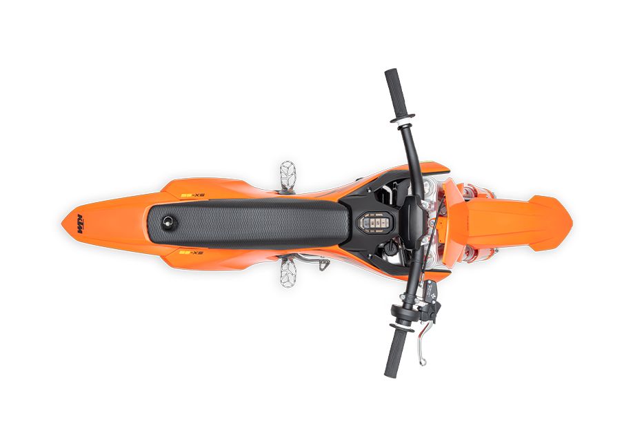 Výšku sedla u modelu KTM SX-E 5 lze nastavit v několika úrovních. Standardní model je vybaven sedlem s výškovým rozsahem 634–682 mm, jehož výšku lze snadno změnit ve dvou krocích – snížením pomocného rámu a montáží zadního tlumiče do alternativní pozice. Přední vidlici lze rovněž snížit v oblasti brýlí.