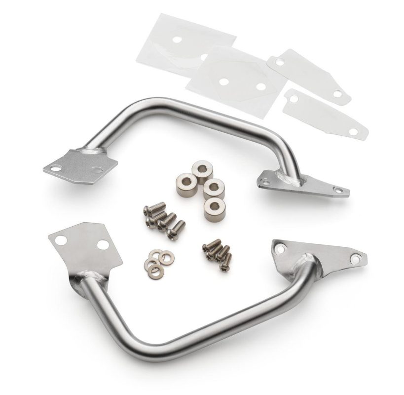 Držák bočních brašen KTM je vyroben z kvalitní nerezové oceli a nabízí mimořádnou pevnost a stabilitu při jízdě. Trubková konstrukce je navržena tak, aby odolala i těm nejnáročnějším podmínkám a zátěžím. Umožňuje bezpečné uchycení bočních brašen a zajišťuje jejich stabilitu během jízdy na silnici i v terénu. Ideální doplněk pro dlouhé cesty, adventure jízdy i každodenní použití.
