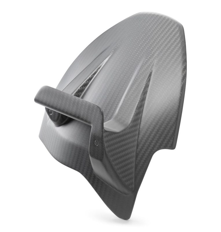 KTM Splash Protection je vysoce kvalitní karbonová ochrana zadní části motocyklu, která spojuje funkčnost s exkluzivním designem. Vyrobena z nejkvalitnějšího karbonu s precizním ručním zpracováním, zajišťuje nízkou hmotnost a vysokou pevnost.