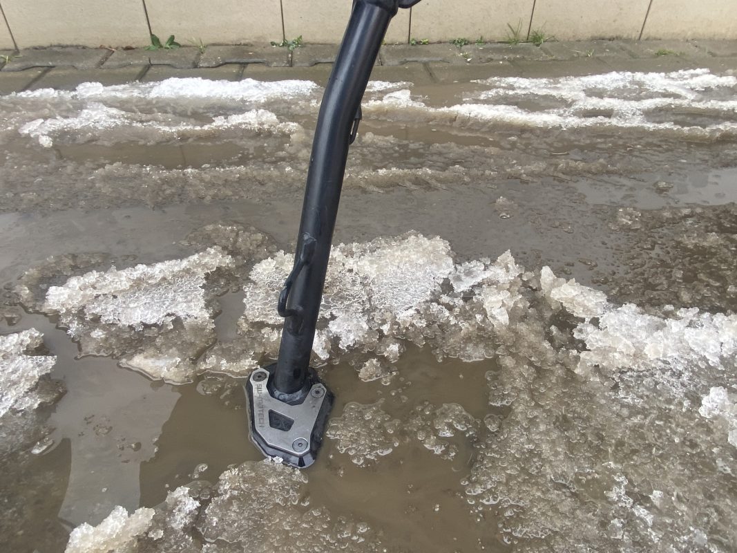 Na motocyklu doplňkově deska na TopCase a boční kufry SW MOTECH, rozšíření stojánku, vyhřívané hefty.