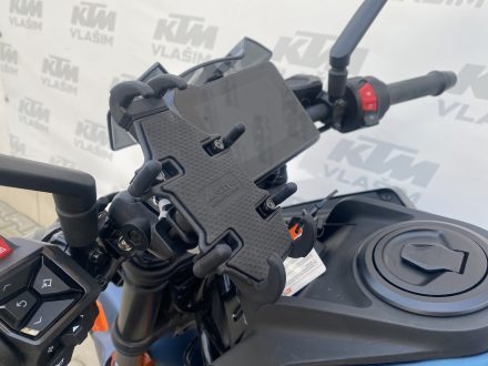Na motocyklu doplňkově padáky v osách kol, plexi štít, držák telefonu M-STYLE.
