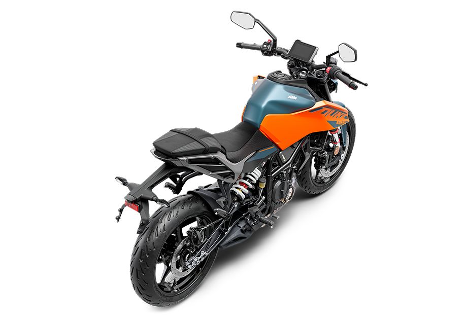 Díky mírně delšímu rozvoru, upravené výšce sedla a nové geometrii rámu nabízí modely řady DUKE výrazně vylepšené vlastnosti při průjezdu zatáčkami, vyšší stabilitu a lepší ovladatelnost. To v kombinaci s již tak vynikající pověstí coby THE SPAWN OF THE BEAST a agresivní polohou při sezení znamená, že KTM 125 DUKE stanovuje měřítka v kategorii motocyklů NAKED.