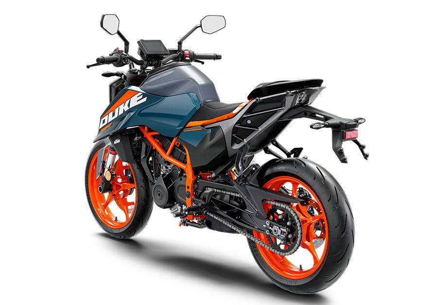 Díky mírně delšímu rozvoru, upravené výšce sedla a nové geometrii rámu nabízí modely řady DUKE výrazně vylepšené vlastnosti při průjezdu zatáčkami, vyšší stabilitu a lepší ovladatelnost. To v kombinaci s již tak vynikající pověstí coby THE CORNER ROCKET a agresivní polohou při sezení znamená, že KTM 390 DUKE stanovuje měřítka v kategorii motocyklů NAKED.