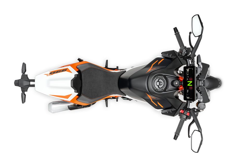 Agresivní vzhled s označením „R“ na nádrži jasně ukazuje vrcholnou DNA modelu. Design vychází z historie modelů KTM, ale posouvá ji na moderní úroveň. Bílé provedení působí výrazně jak v pohybu, tak při stání.
