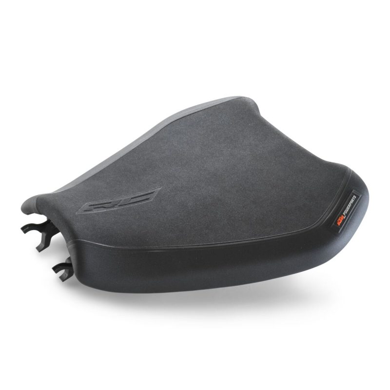 KTM Rider’s Seat je navrženo pro dokonalé spojení funkčnosti a stylu. Poskytuje stejnou výšku sezení jako standardní sedlo, avšak s osobitým sportovním vzhledem přizpůsobeným designu motocyklu.