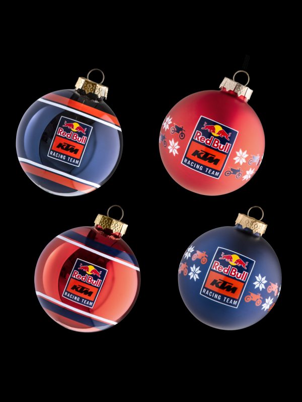 Vánoční ozdoby Red Bull KTM jsou součástí oficiální lifestylové kolekce RB Lifestyle a přinášejí závodní atmosféru KTM Racing Team přímo na váš vánoční stromek. Ozdoby kombinují ikonické barvy Red Bull KTM a výraznou grafiku inspirovanou světem motorsportu. Jsou určeny jako dekorativní doplněk pro vánoční výzdobu a potěší každého fanouška značky KTM.